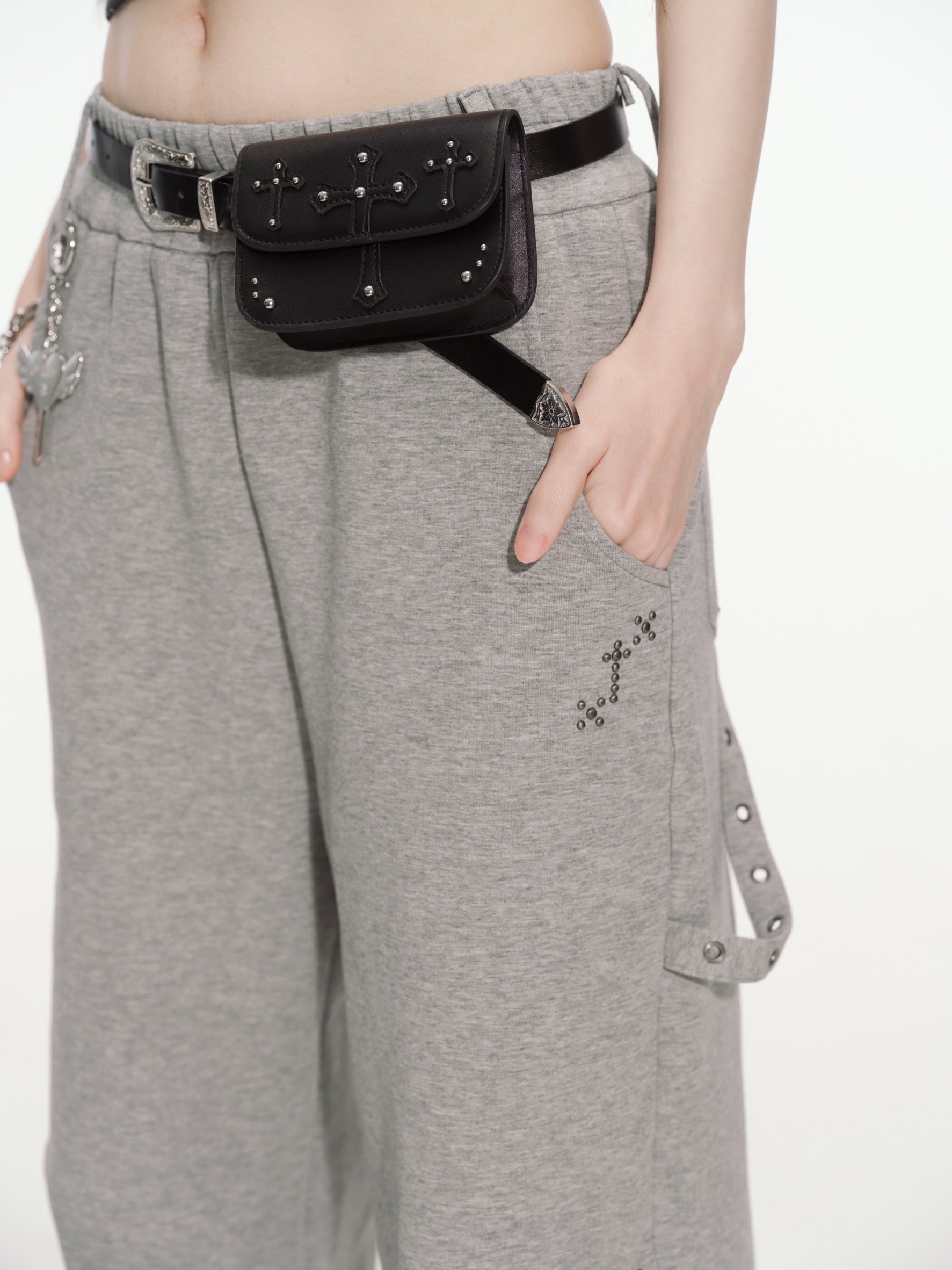 cross sweat wide pants