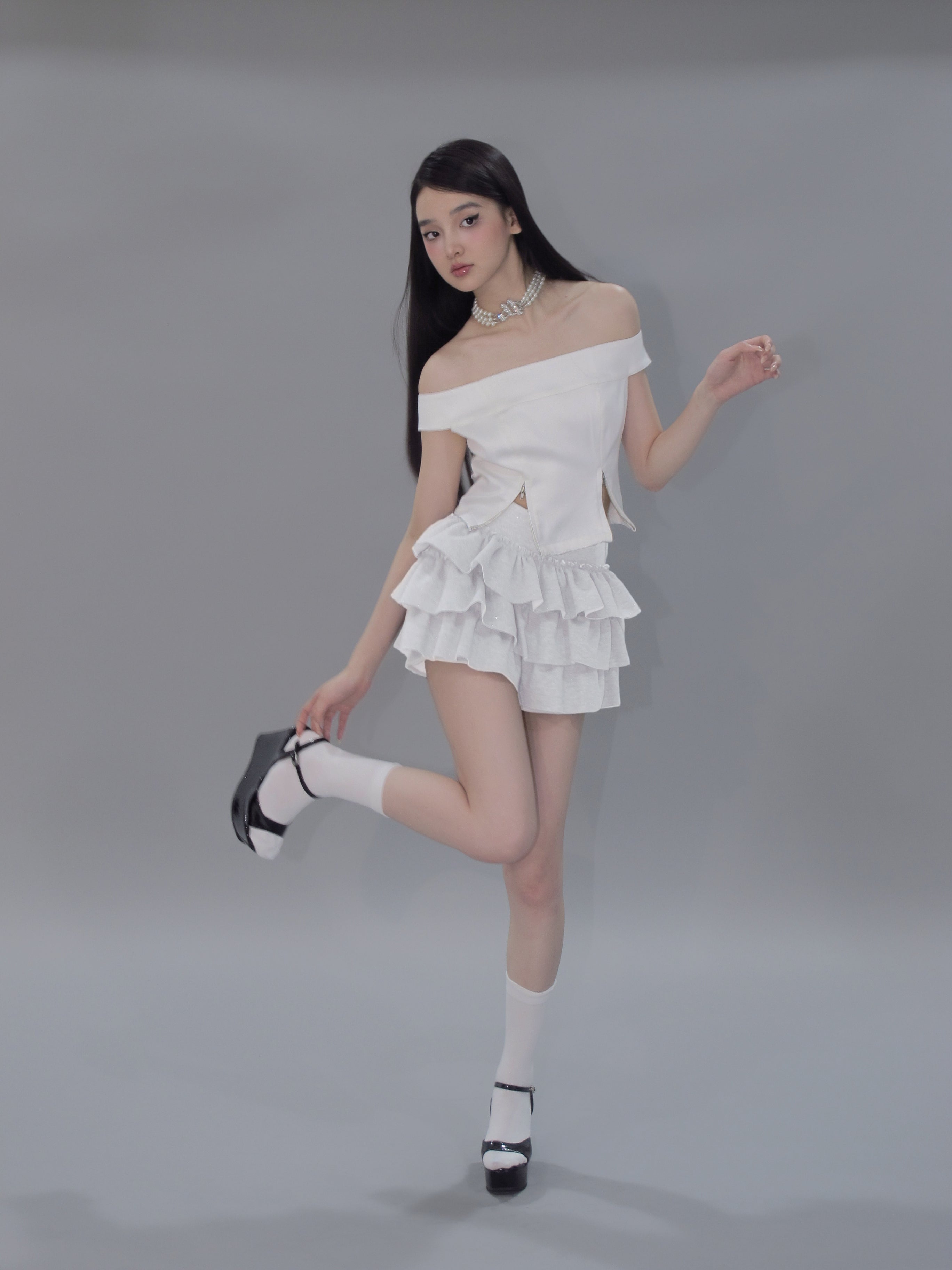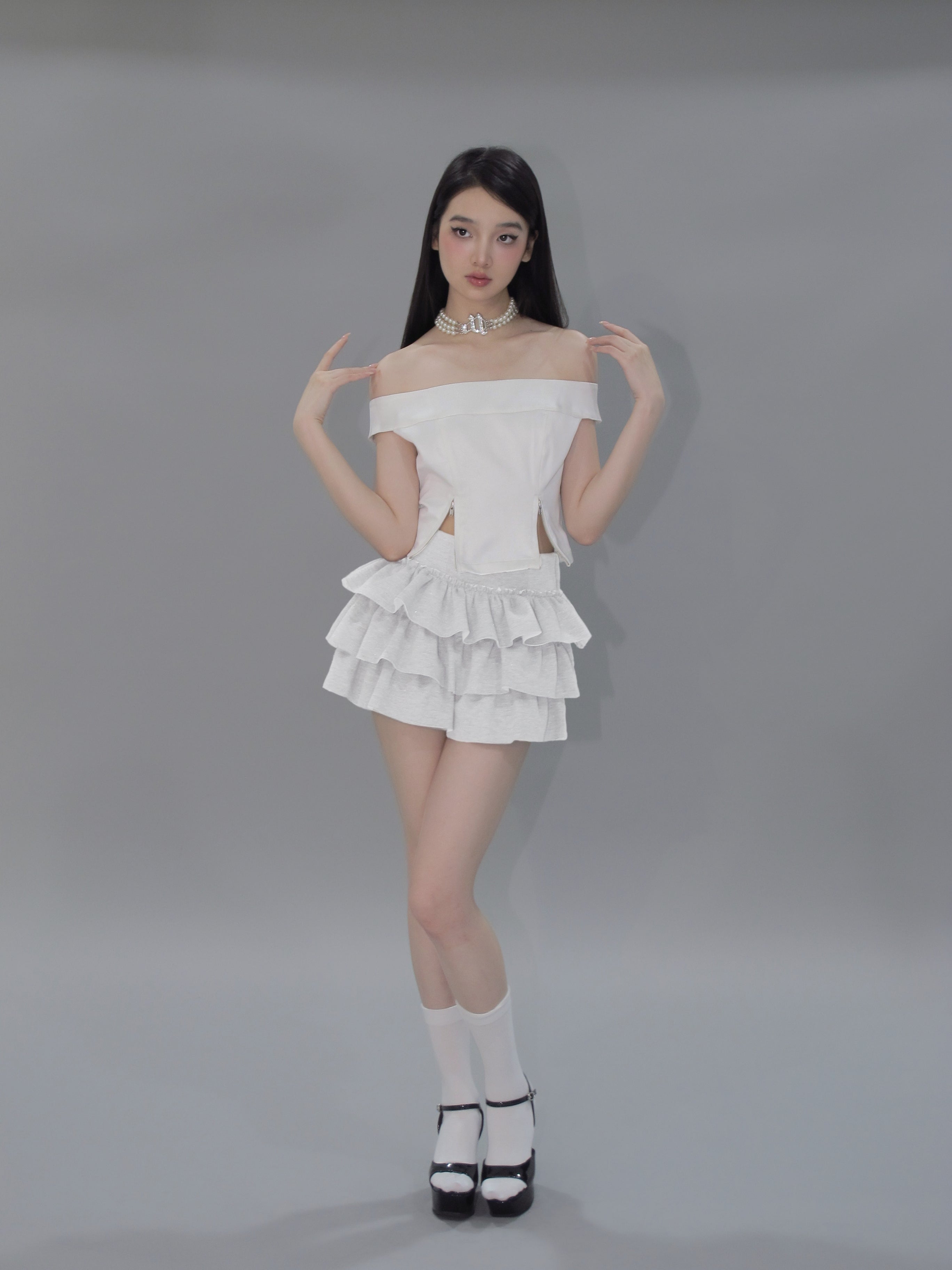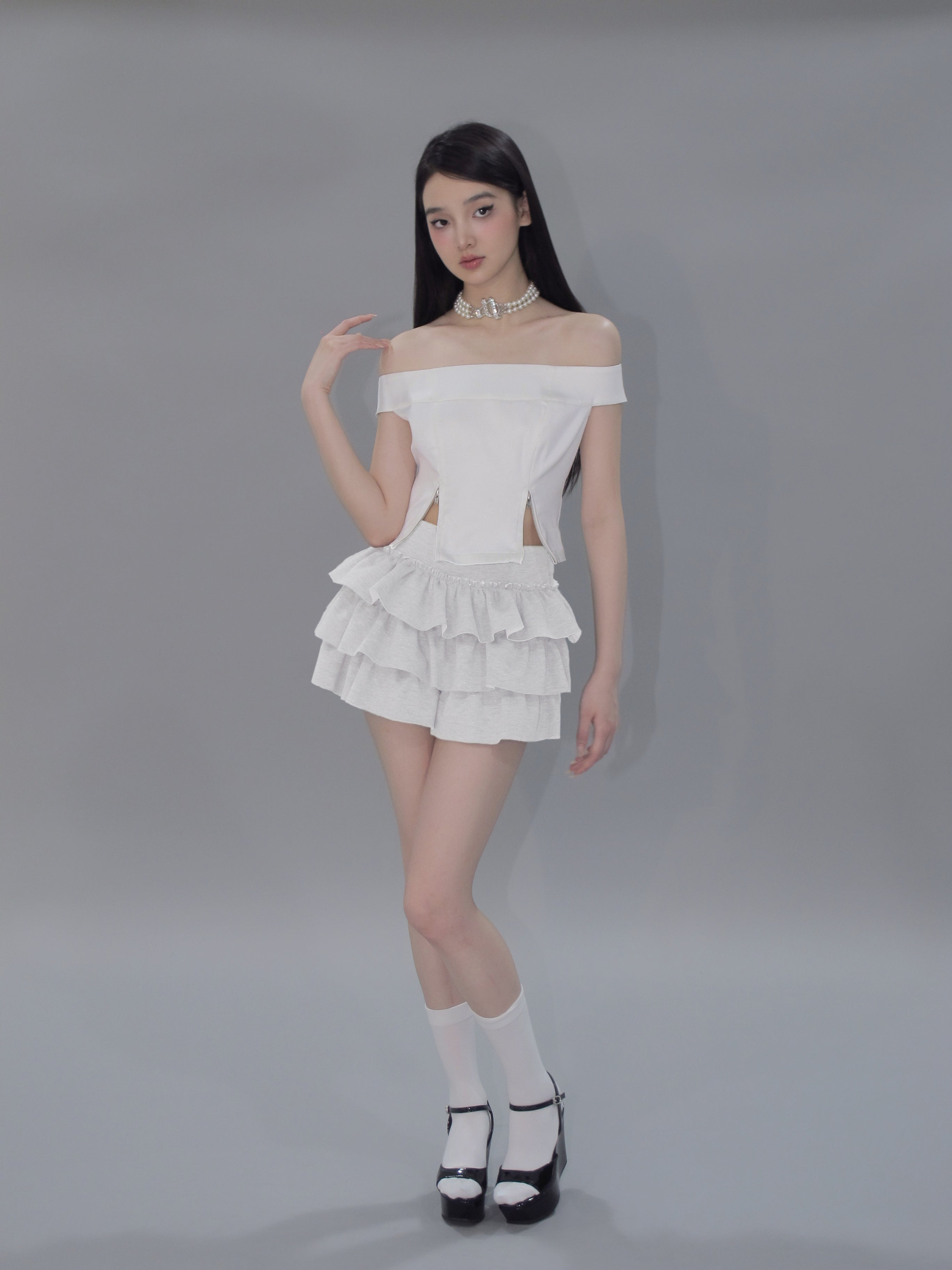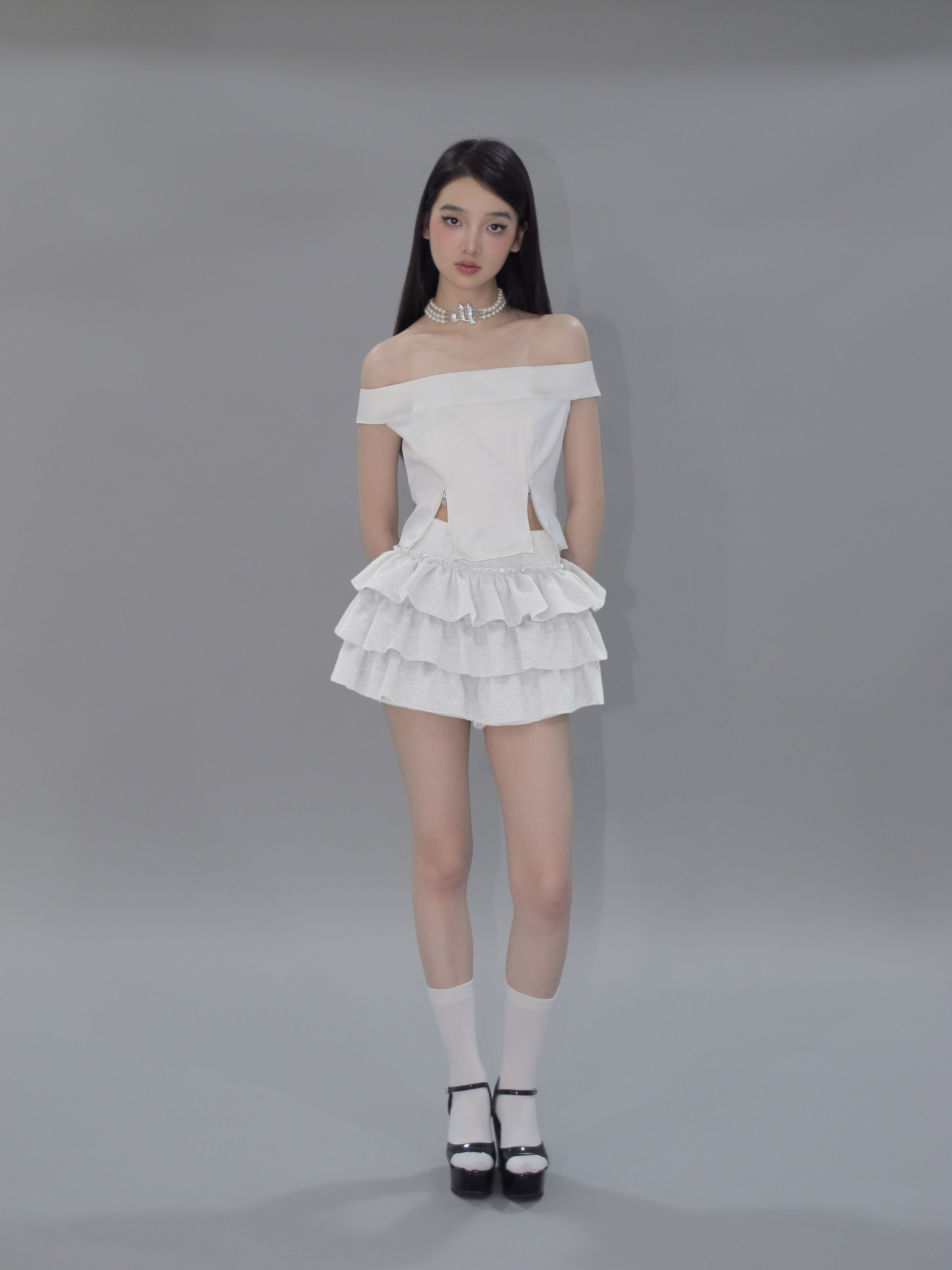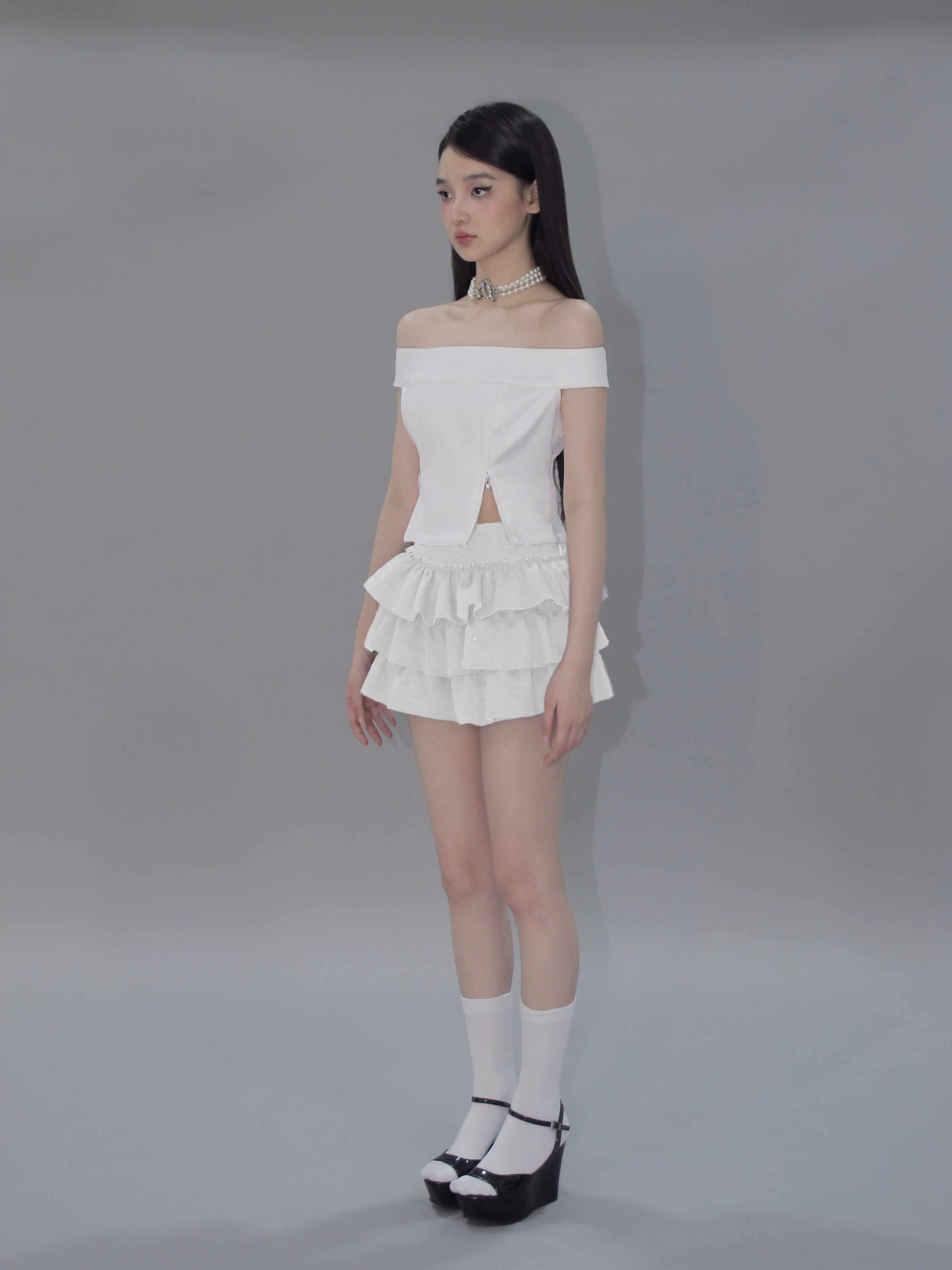 Kirakira frill culotte mini skirt (white)