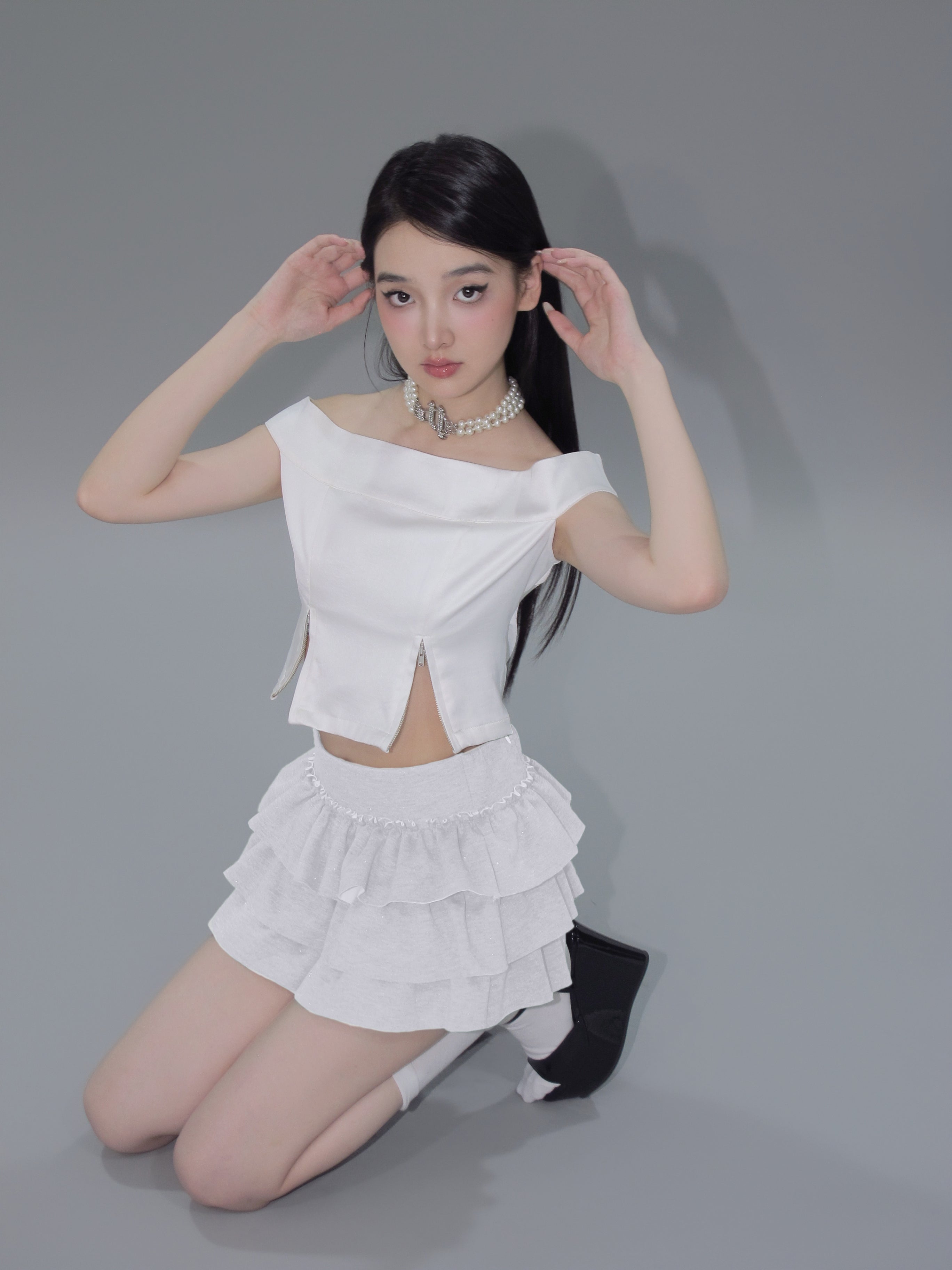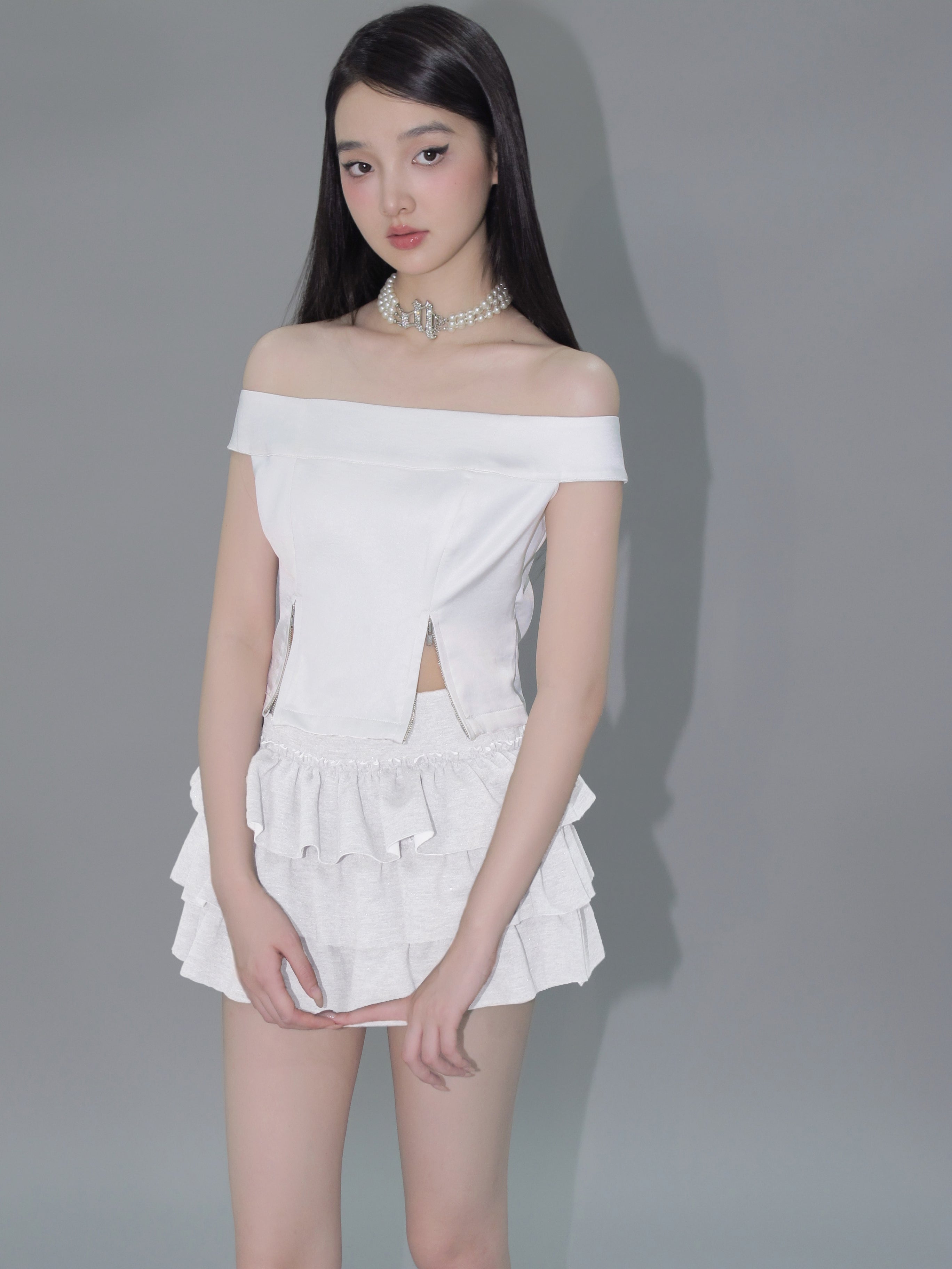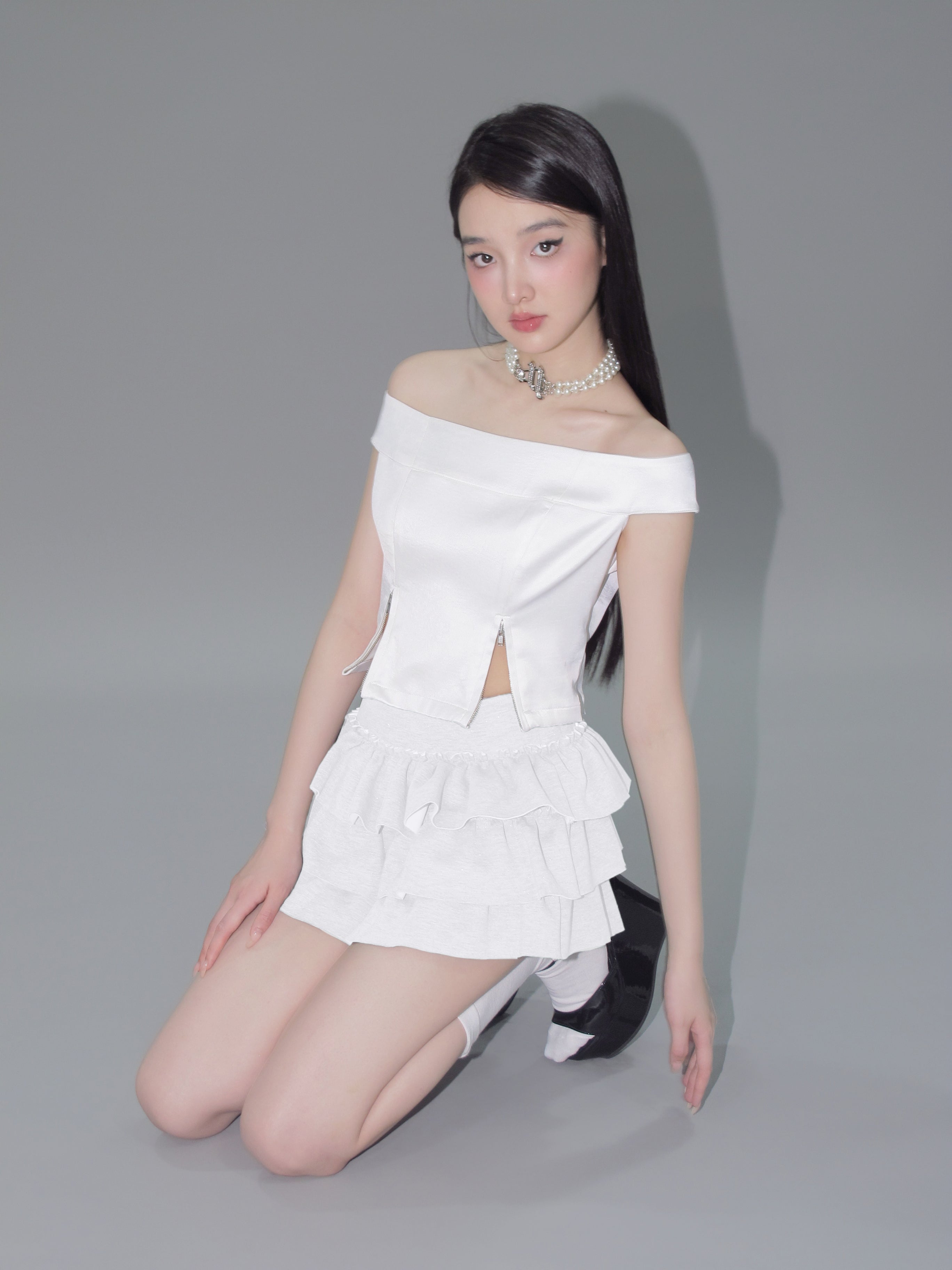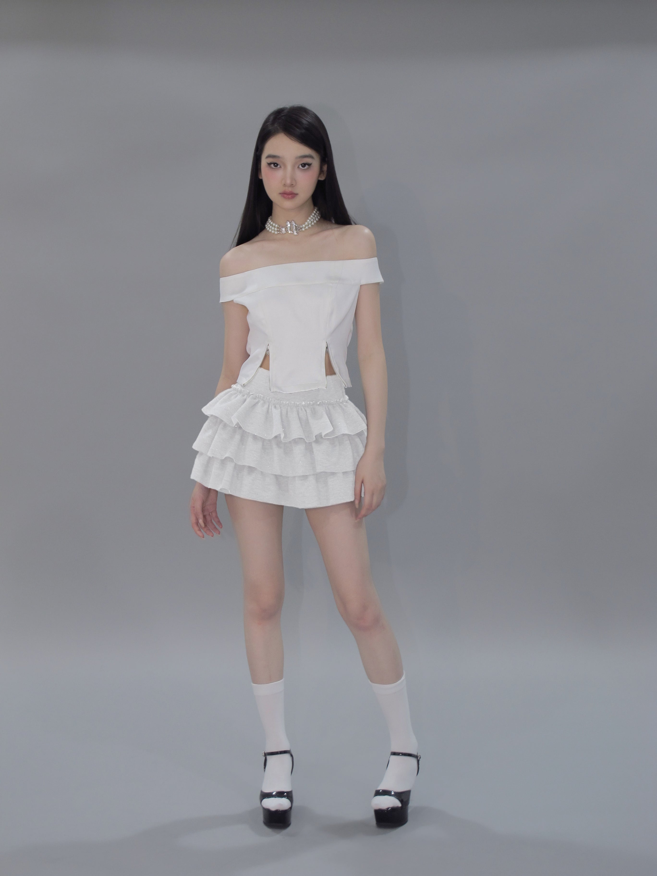 Kirakira frill culotte mini skirt (white)