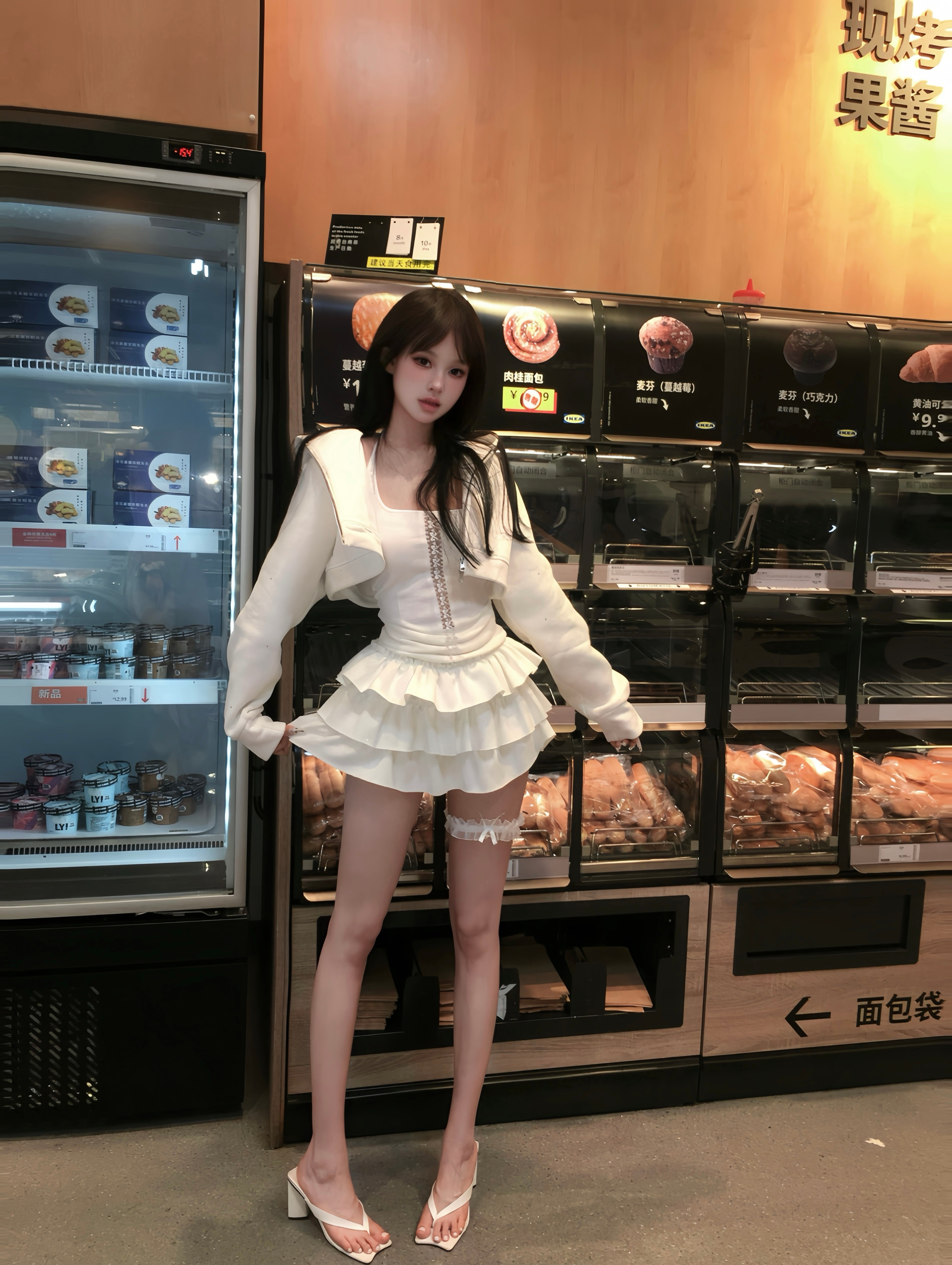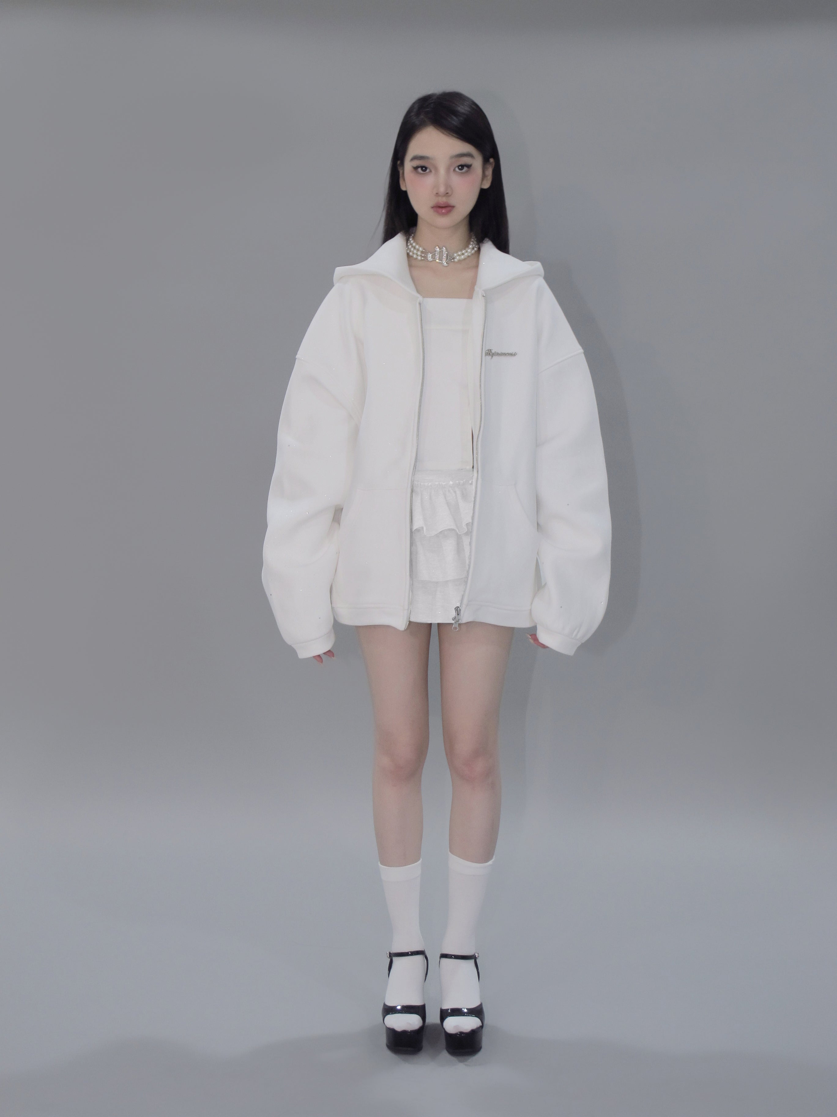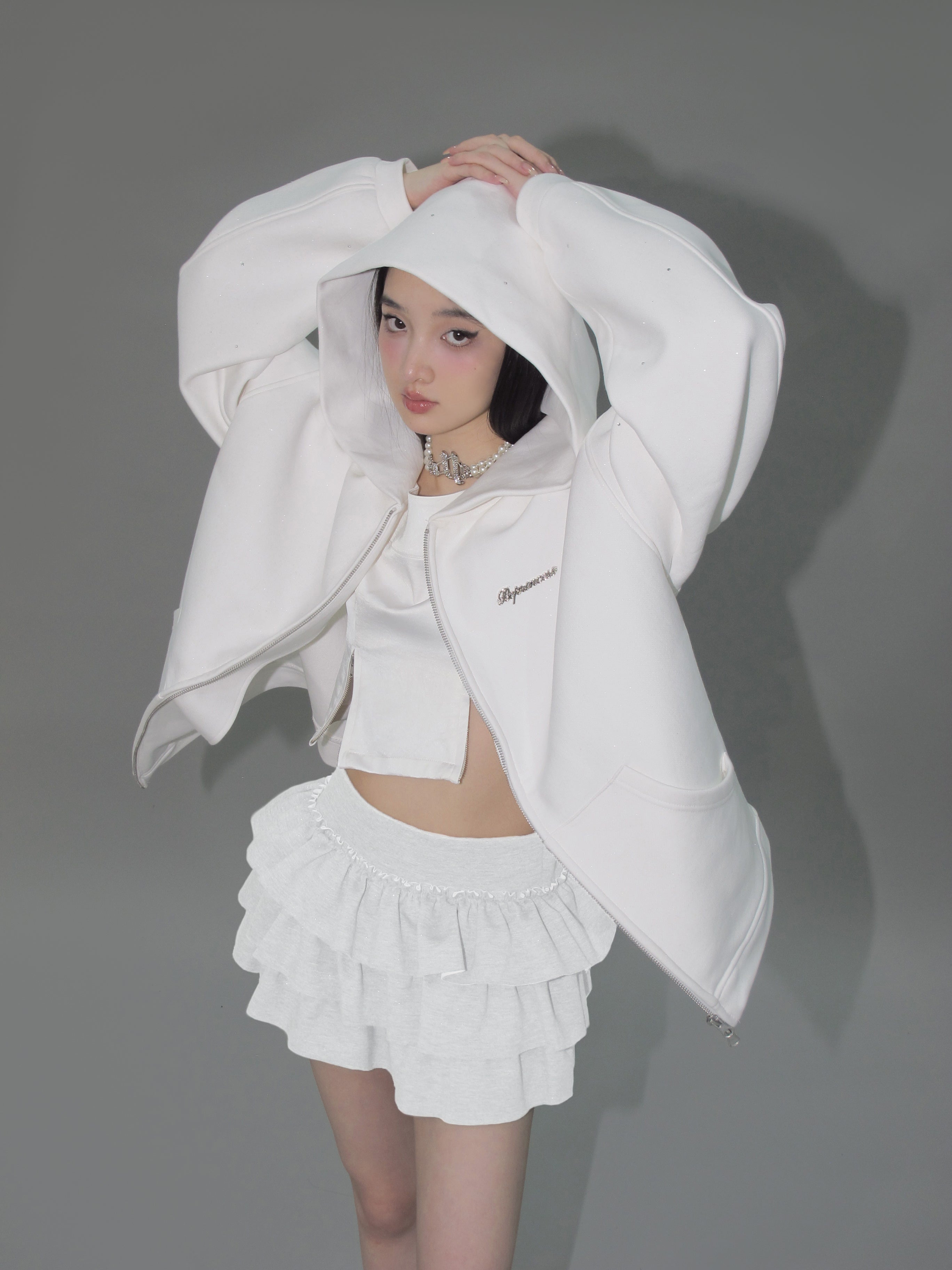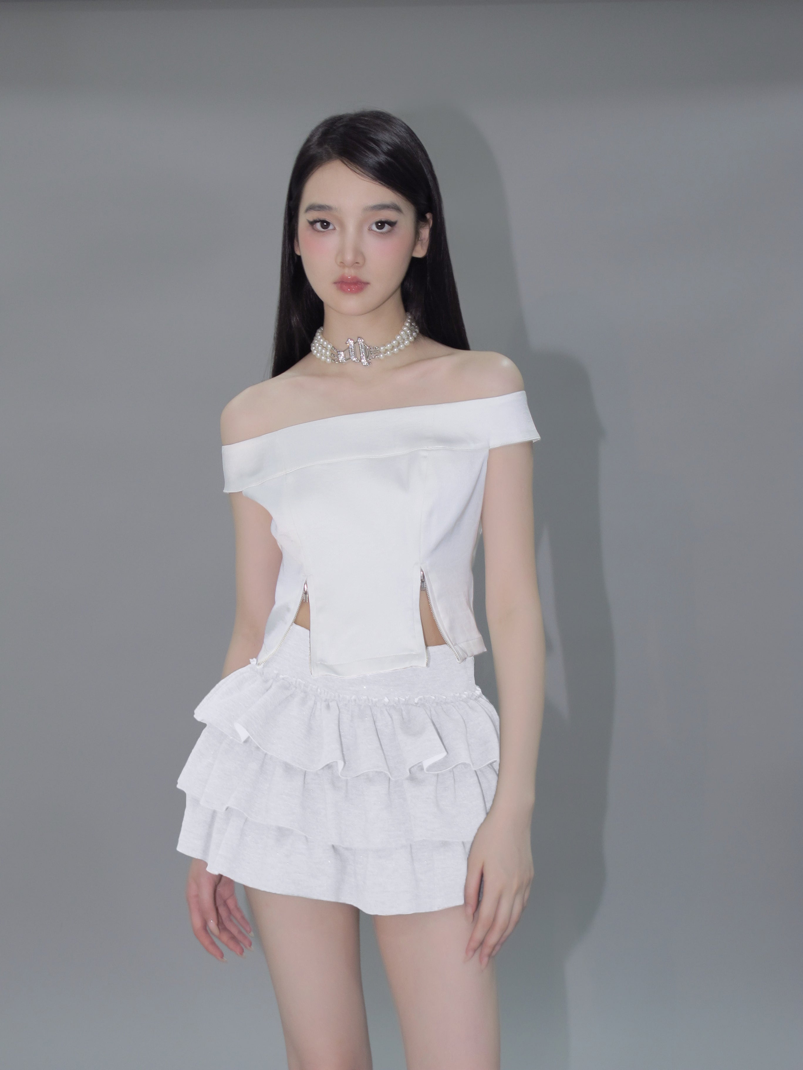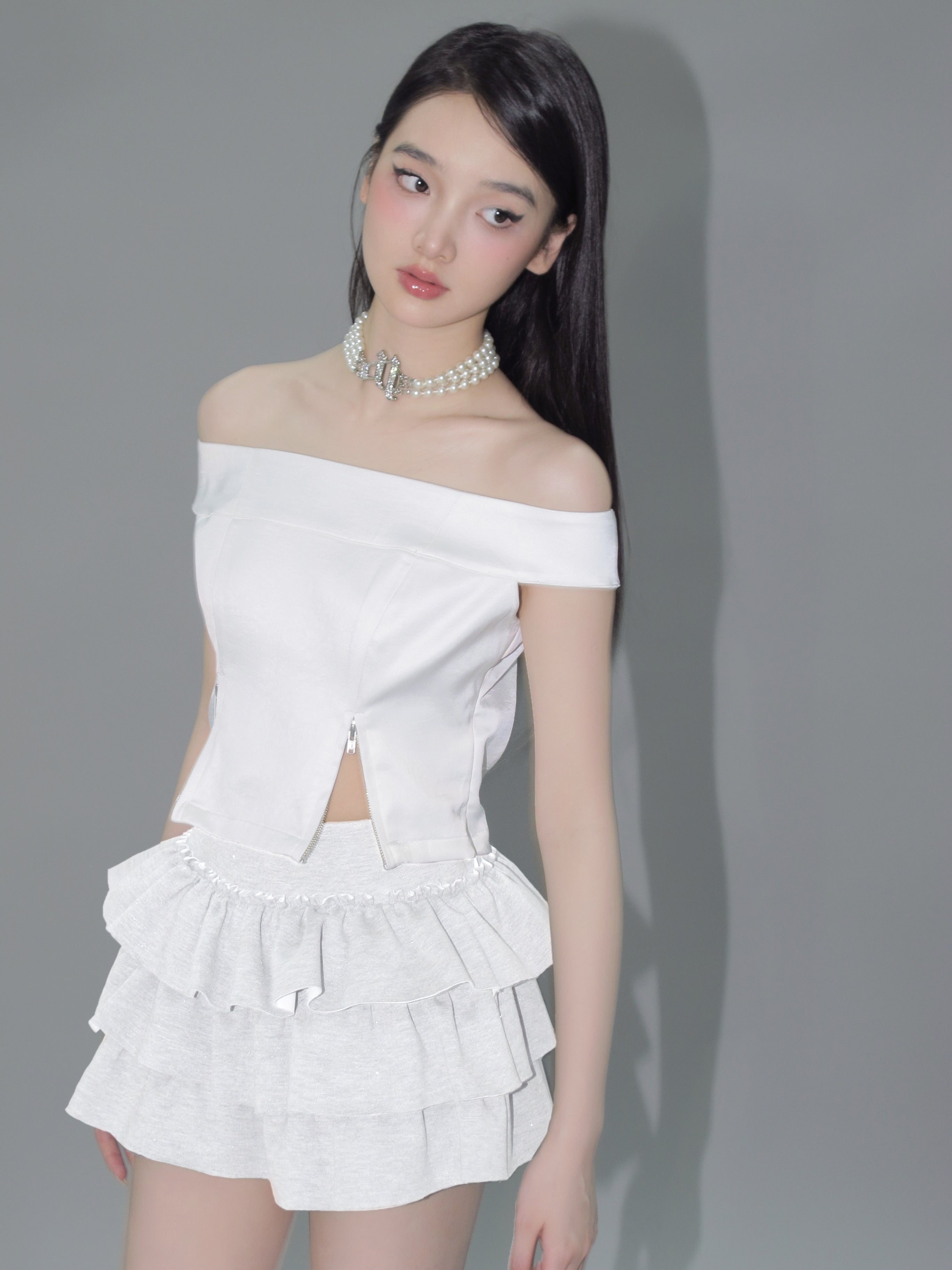 Kirakira frill culotte mini skirt (white)