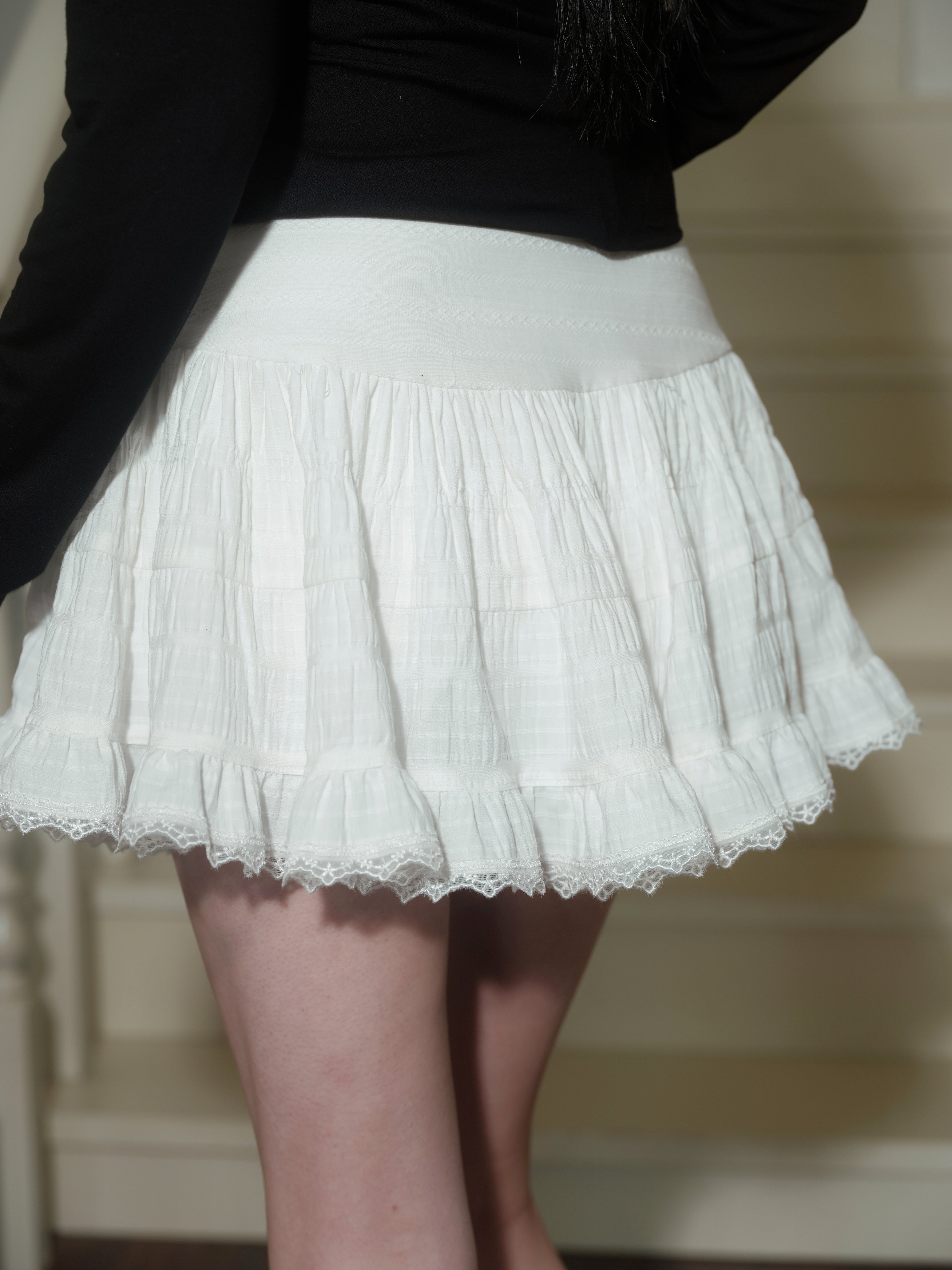 shirring frill mini skirt